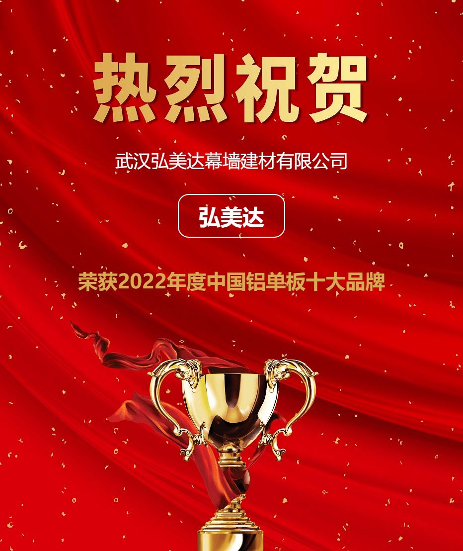原标题:2022凯发官网入口年度铝单板十大品牌榜十公布,弘美达荣耀上榜!