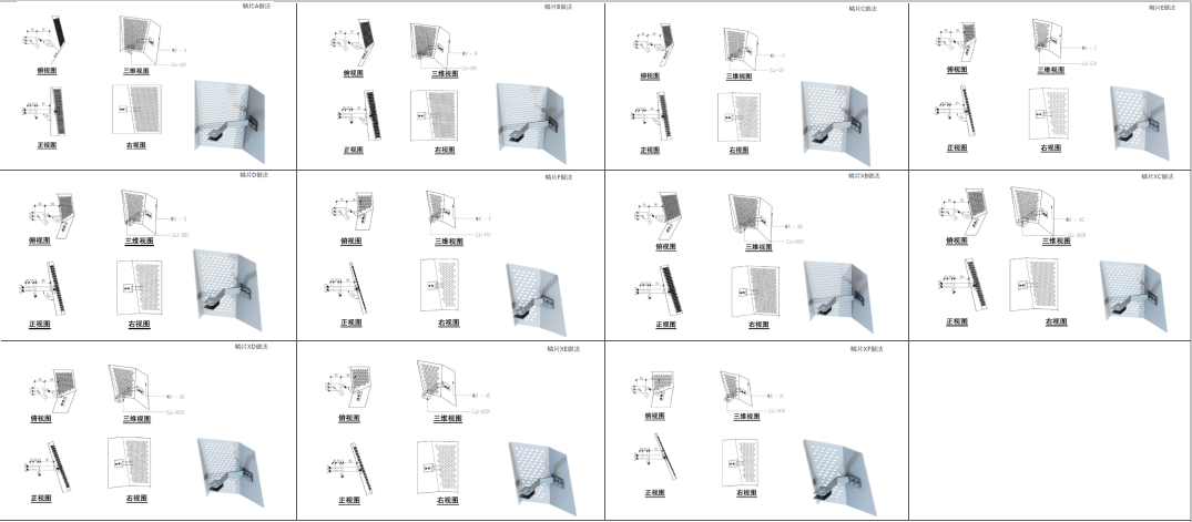 6种不同规格、不同角度的
